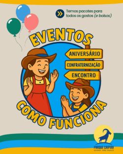 Celebre no Parque Caipira! Aniversário no Parque, Festa da Colônia ou Picnic Campestre: três jeitos diferentes de viver momentos especiais entre amigos, familiares ou colegas, em um cenário único no campo.